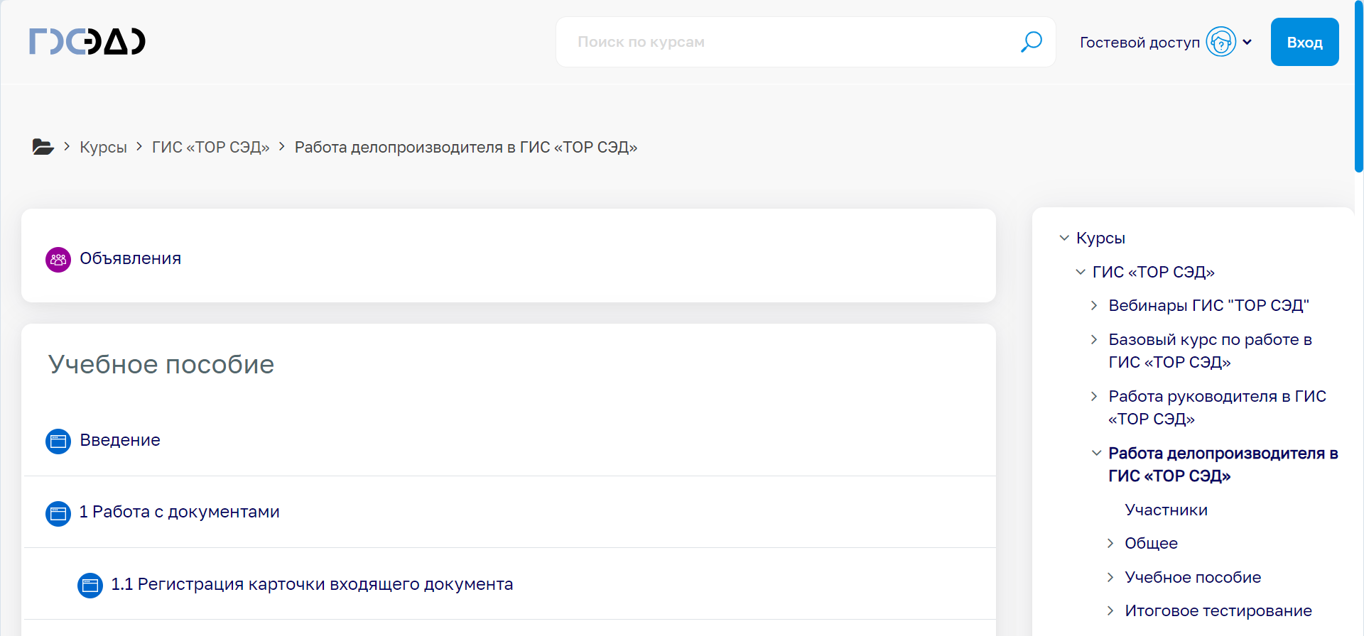 Работа делопроизводителя в ГИС «ТОР СЭД»